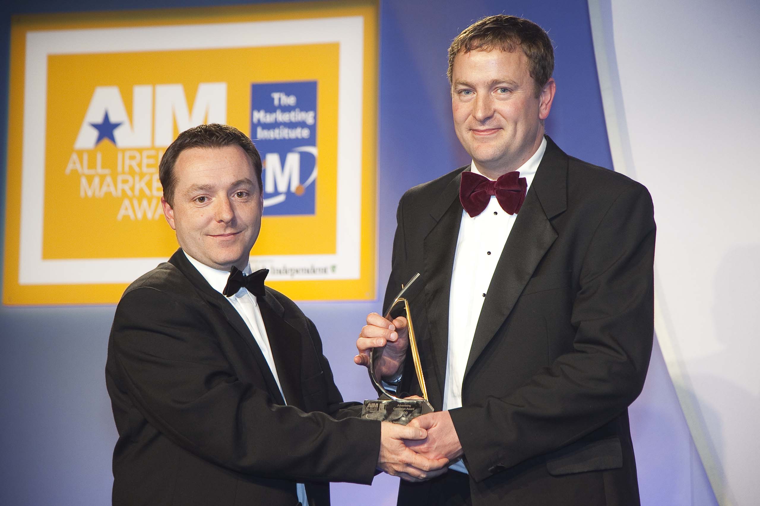 Jonnie Cahill, 02, sponsor of the Advertising Campaign Award, with award winner, Aengus King, Coca-Cola Ireland
