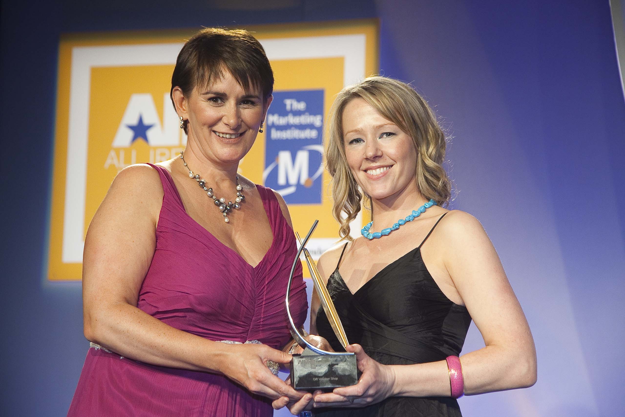 Carolan Lennon, Vodafone, sponsor of the Marketing Innovation Award, with award winner, Aoife Davey, Gift Voucher Shop
