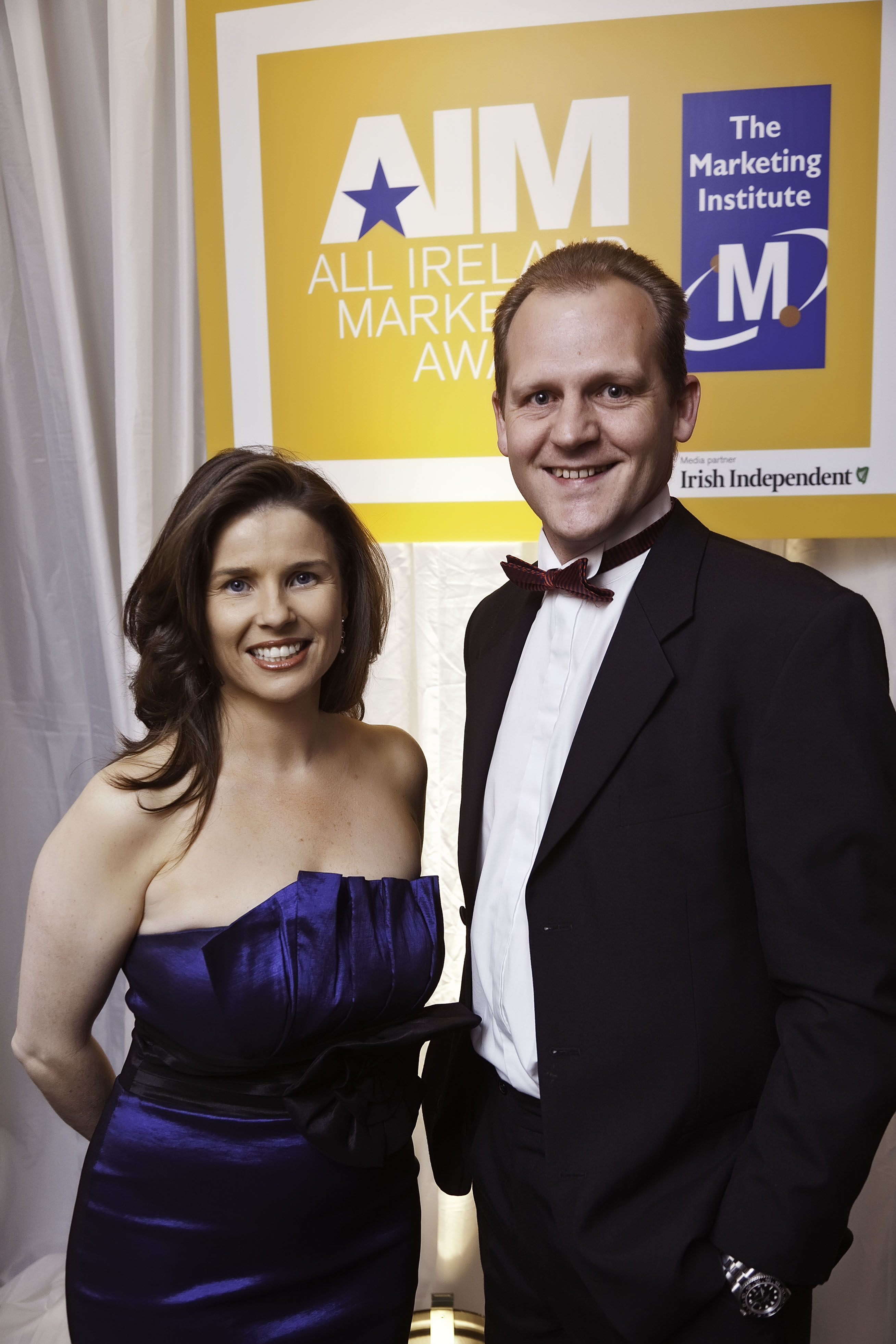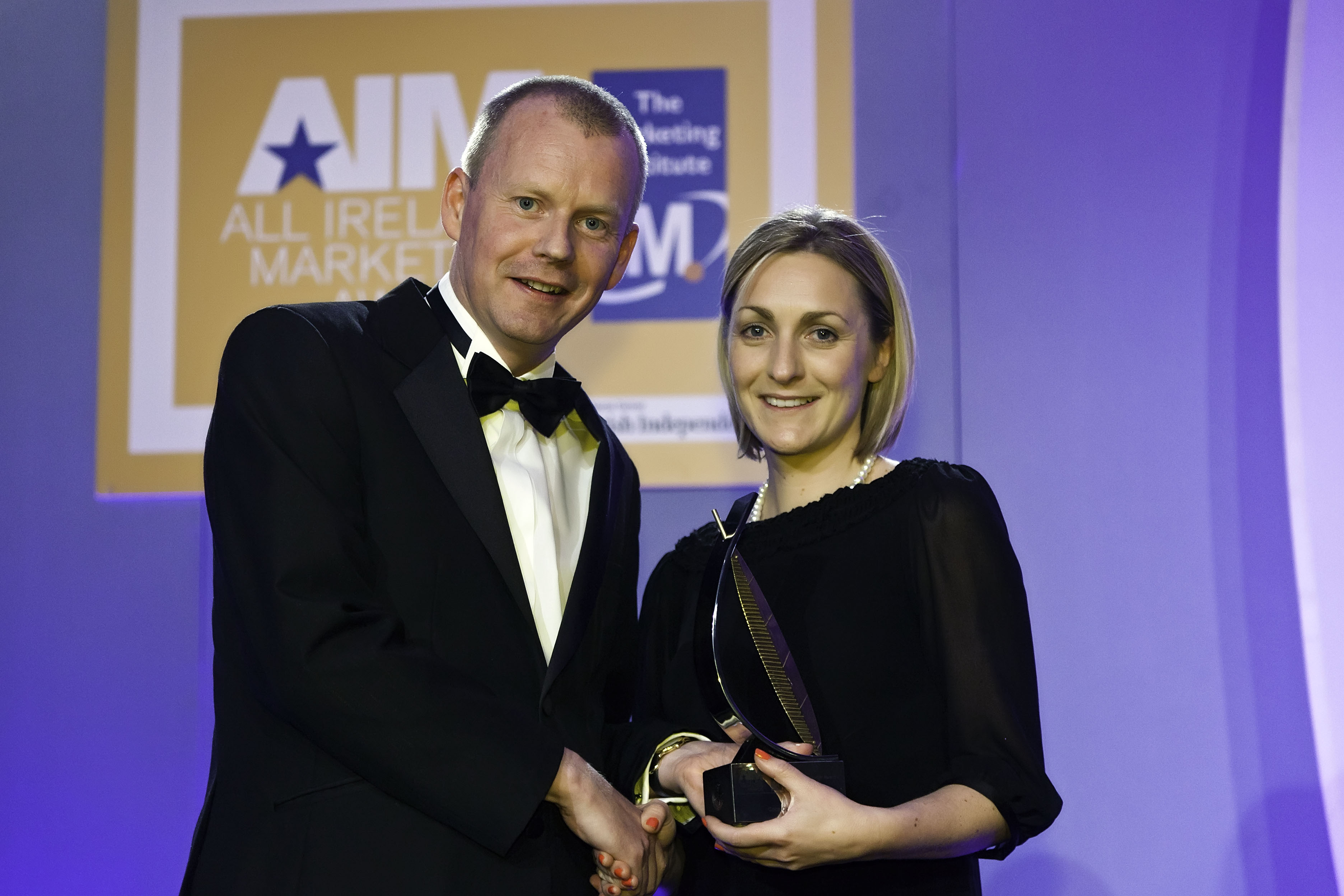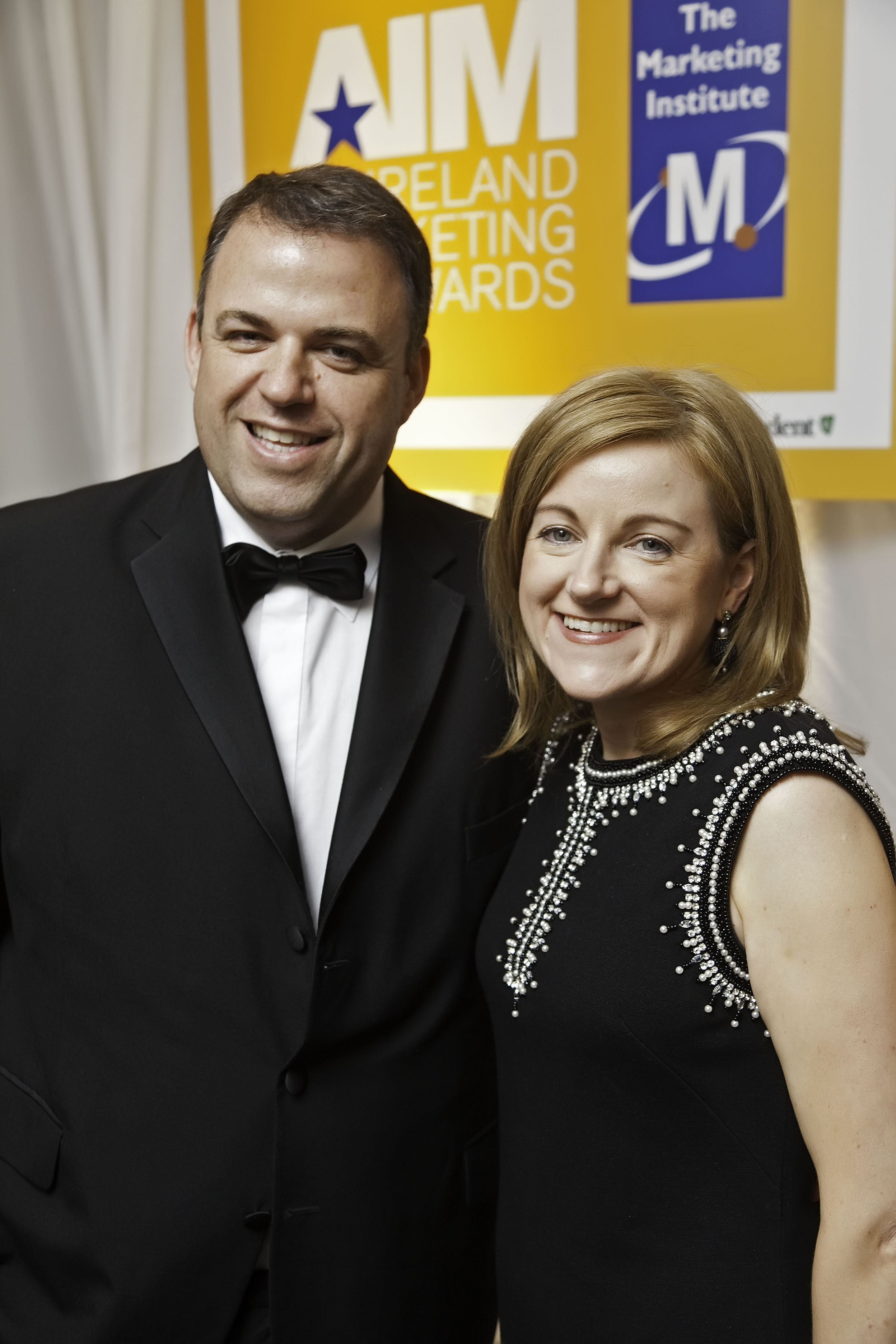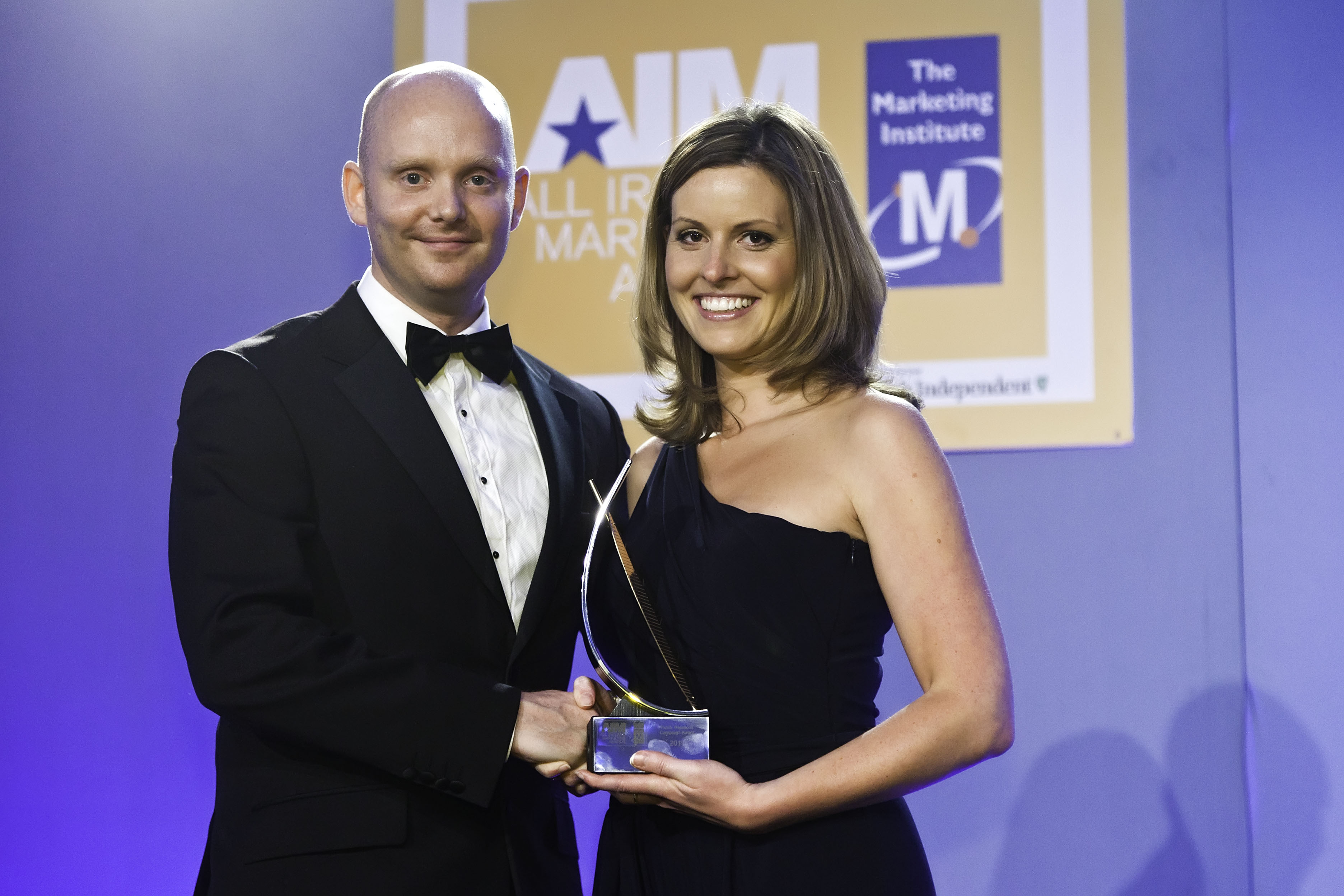 John Anslow, Meteor (sponsor of the Brand Campaign of the Year Award), with award winner Aoife Hall, Coca-Cola Ireland