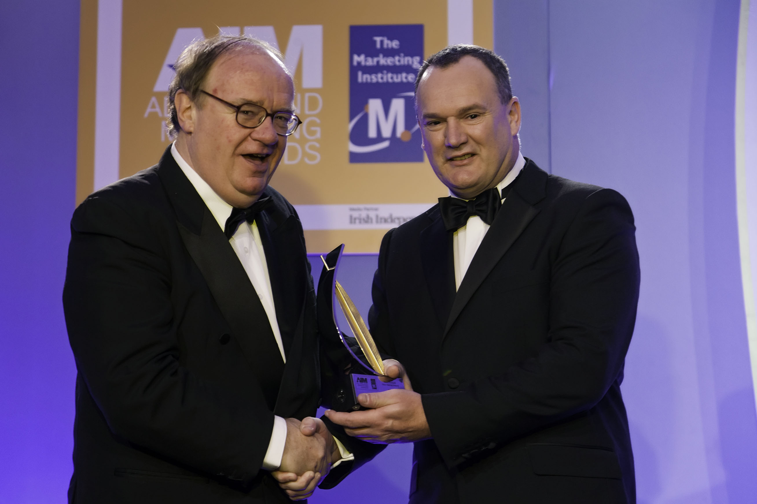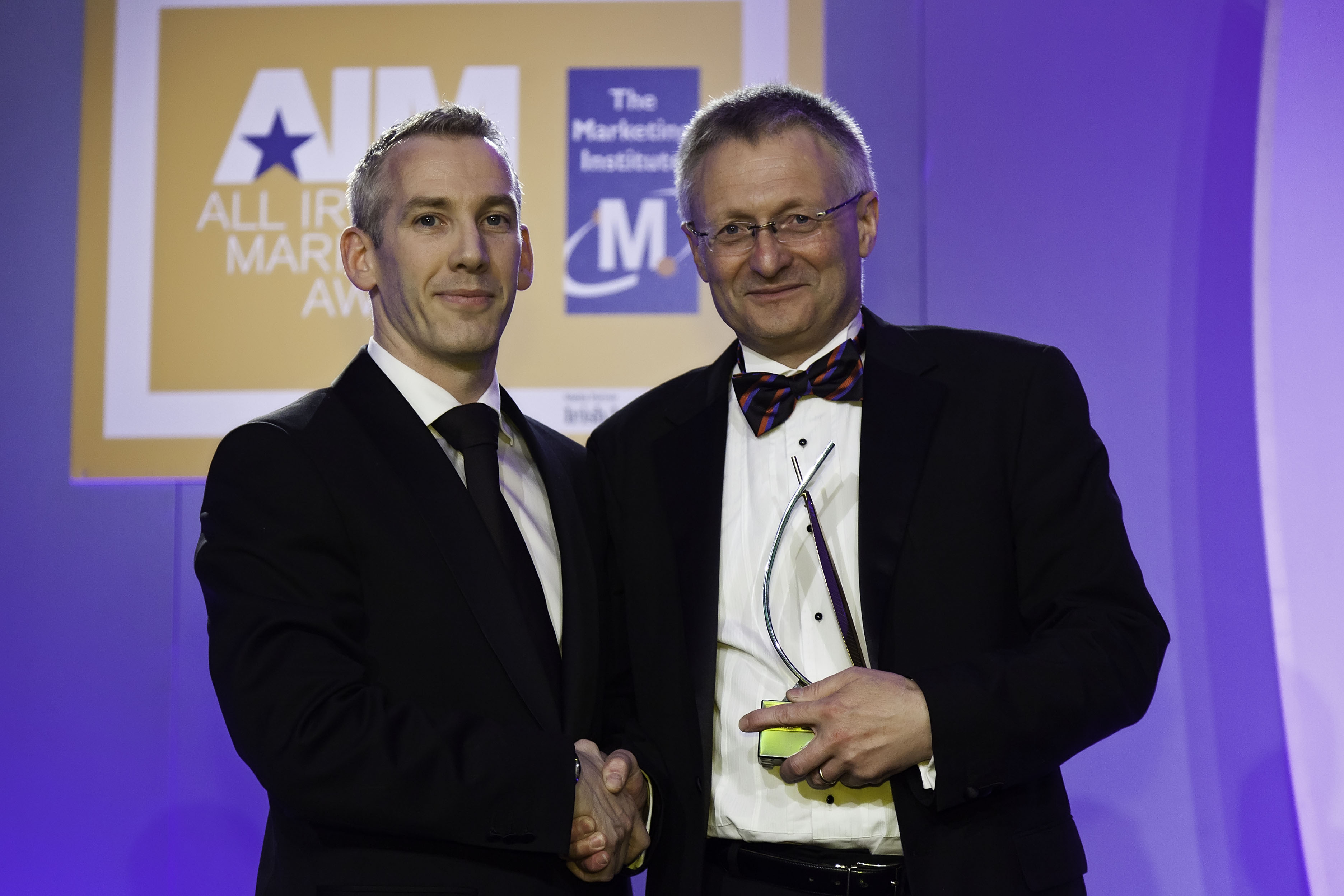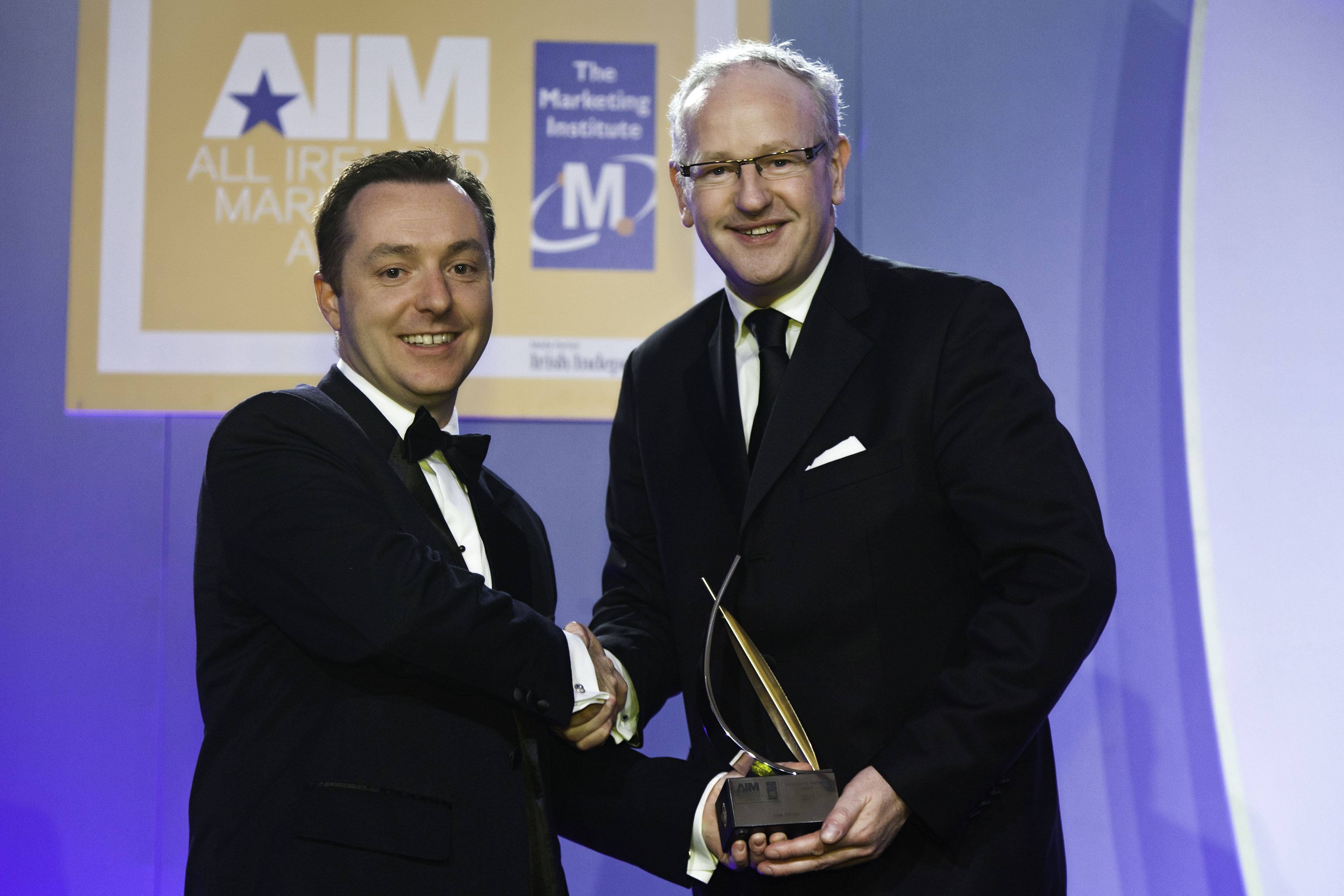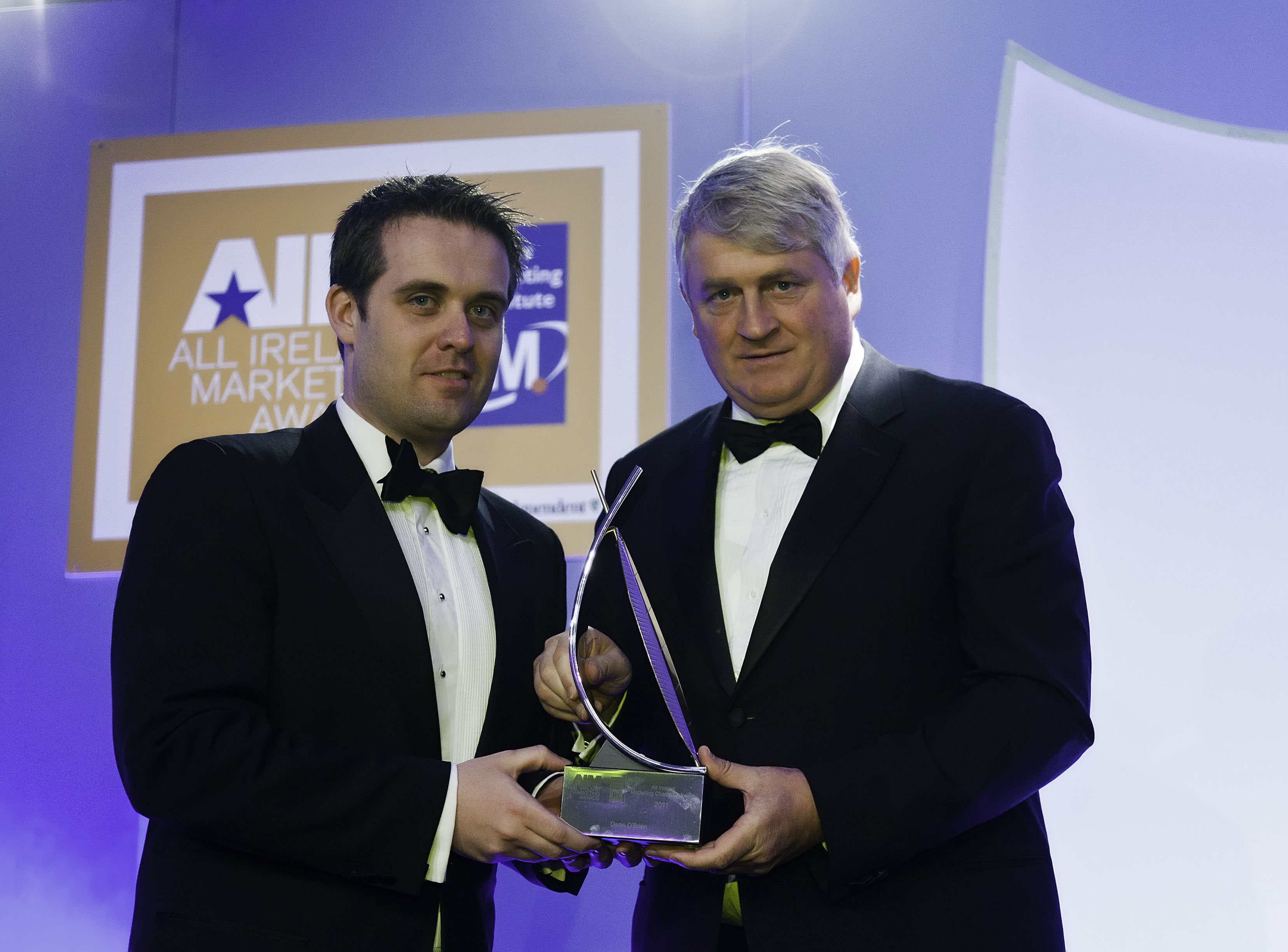 Jonnie Cahill, O2 Ireland (sponsor of the International Marketing Award), with award winner Daragh O’Reilly, Irish Ferries