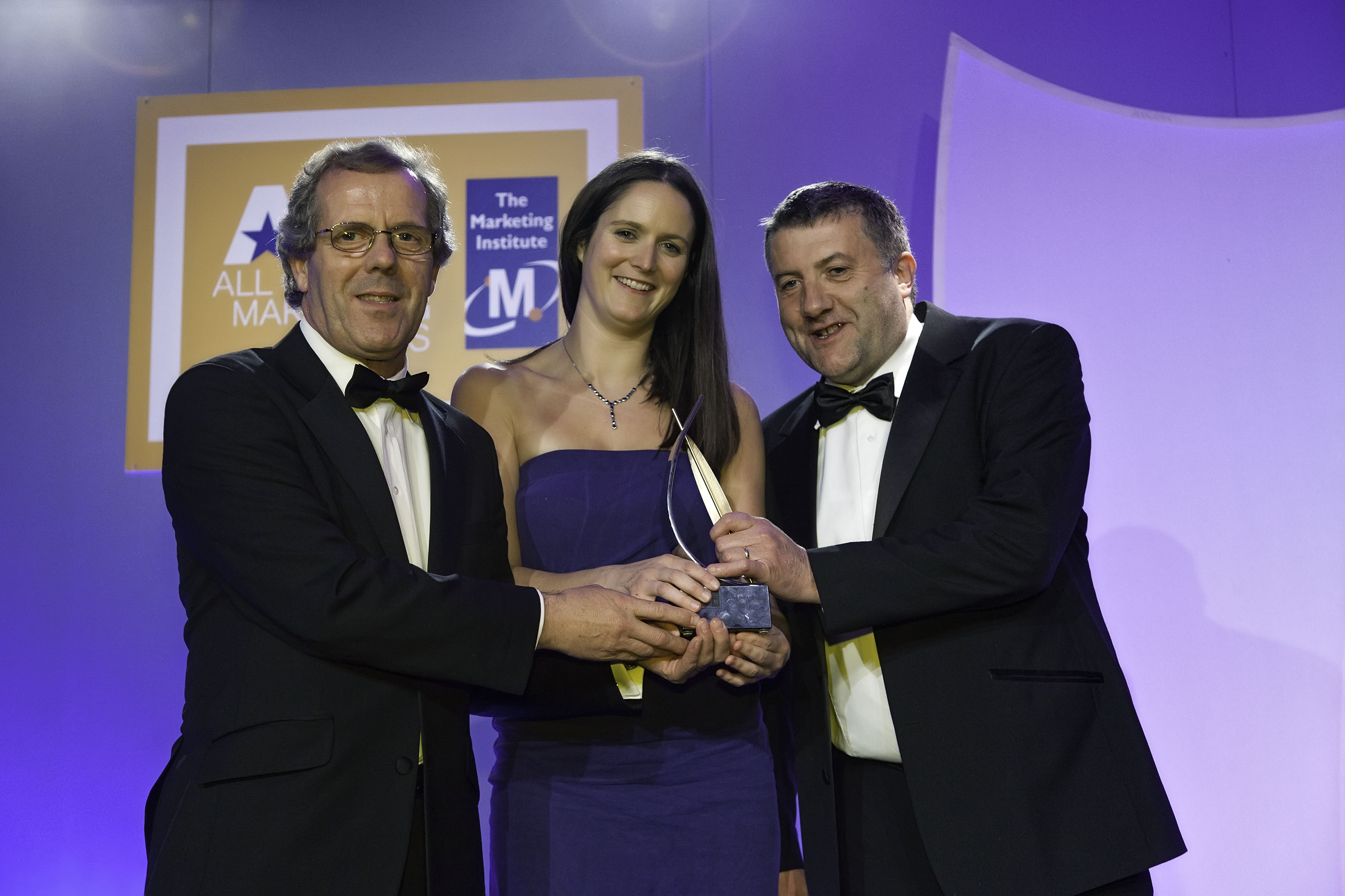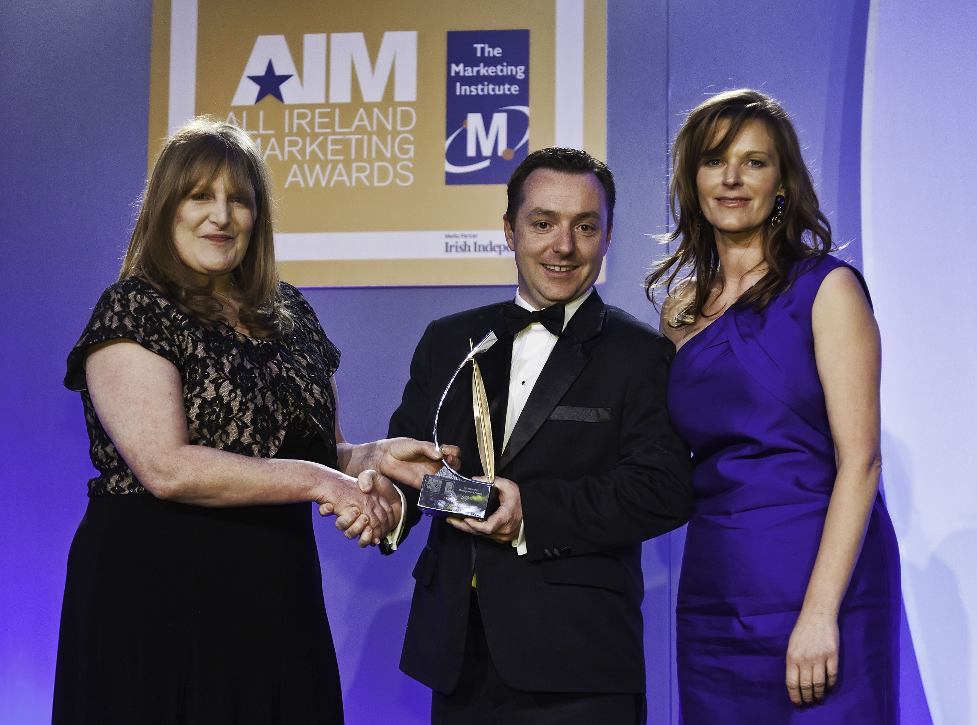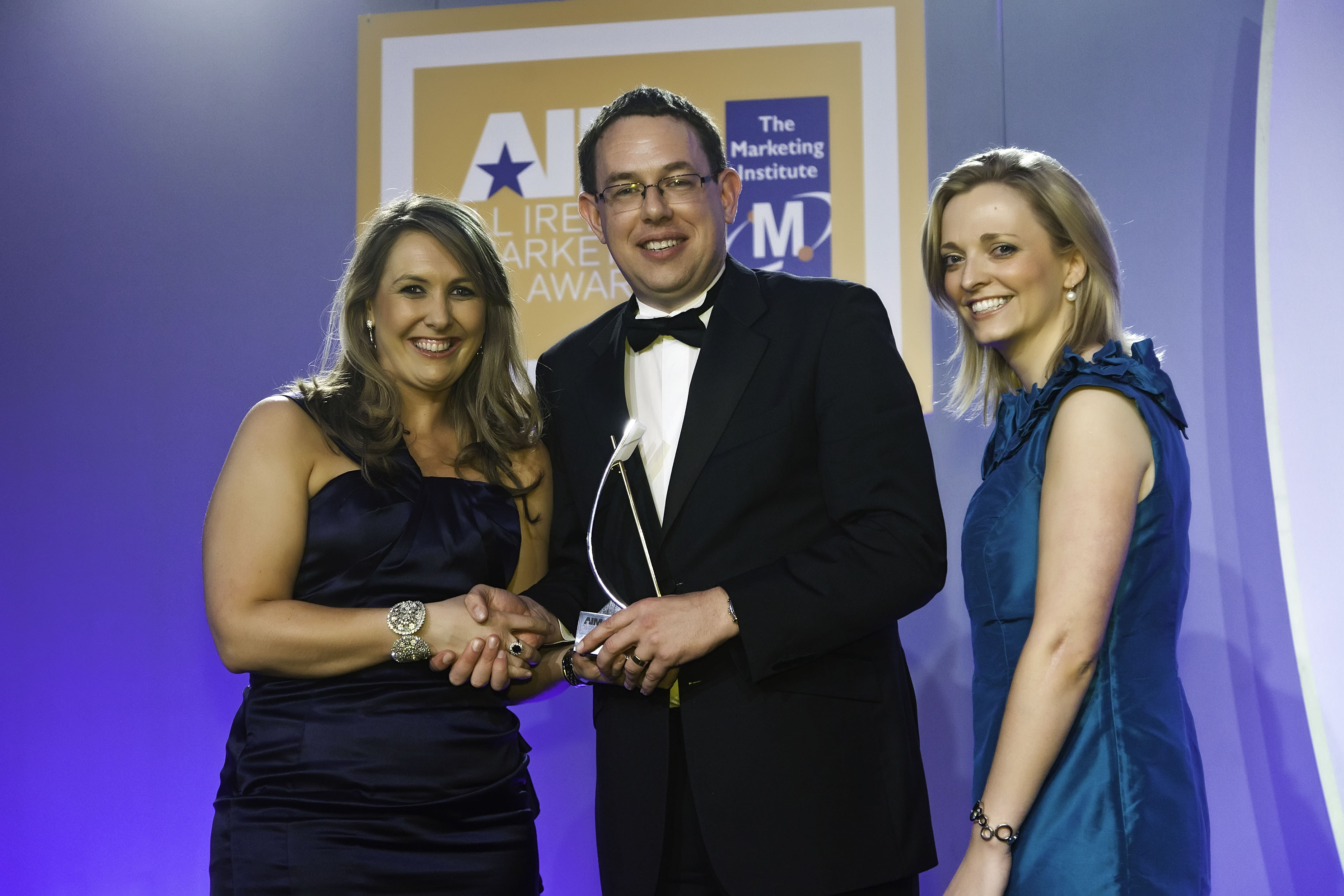 Grainne Rothery, Marketing Age (sponsor of the Sponsorship Management Award) with award winners Jonnie Cahill and Jill Keene, O2 Ireland