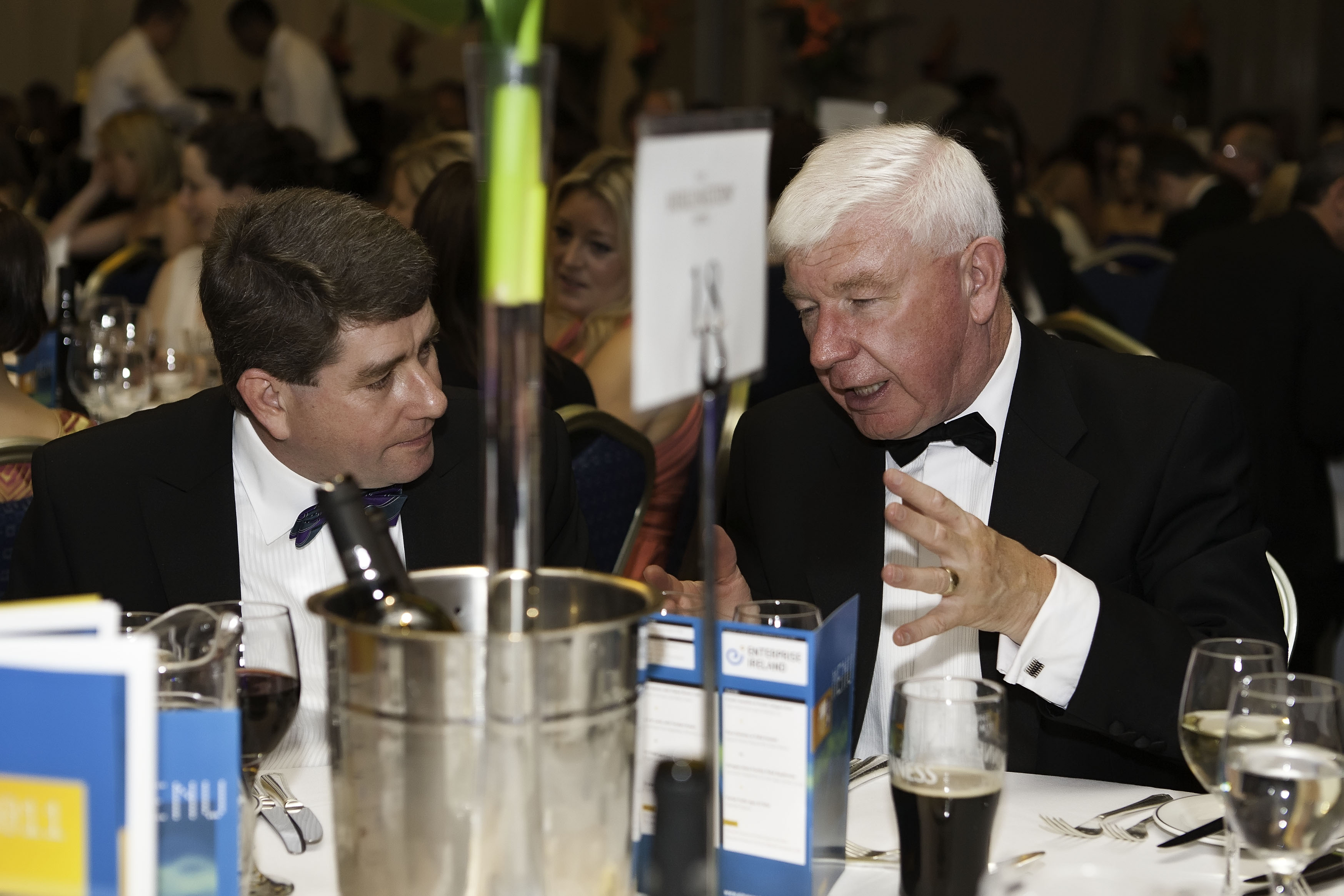 Geoff Lyons, Irish Independent (sponsor of the All Ireland Marketing Champion Award), with award winner Denis O’Brien.