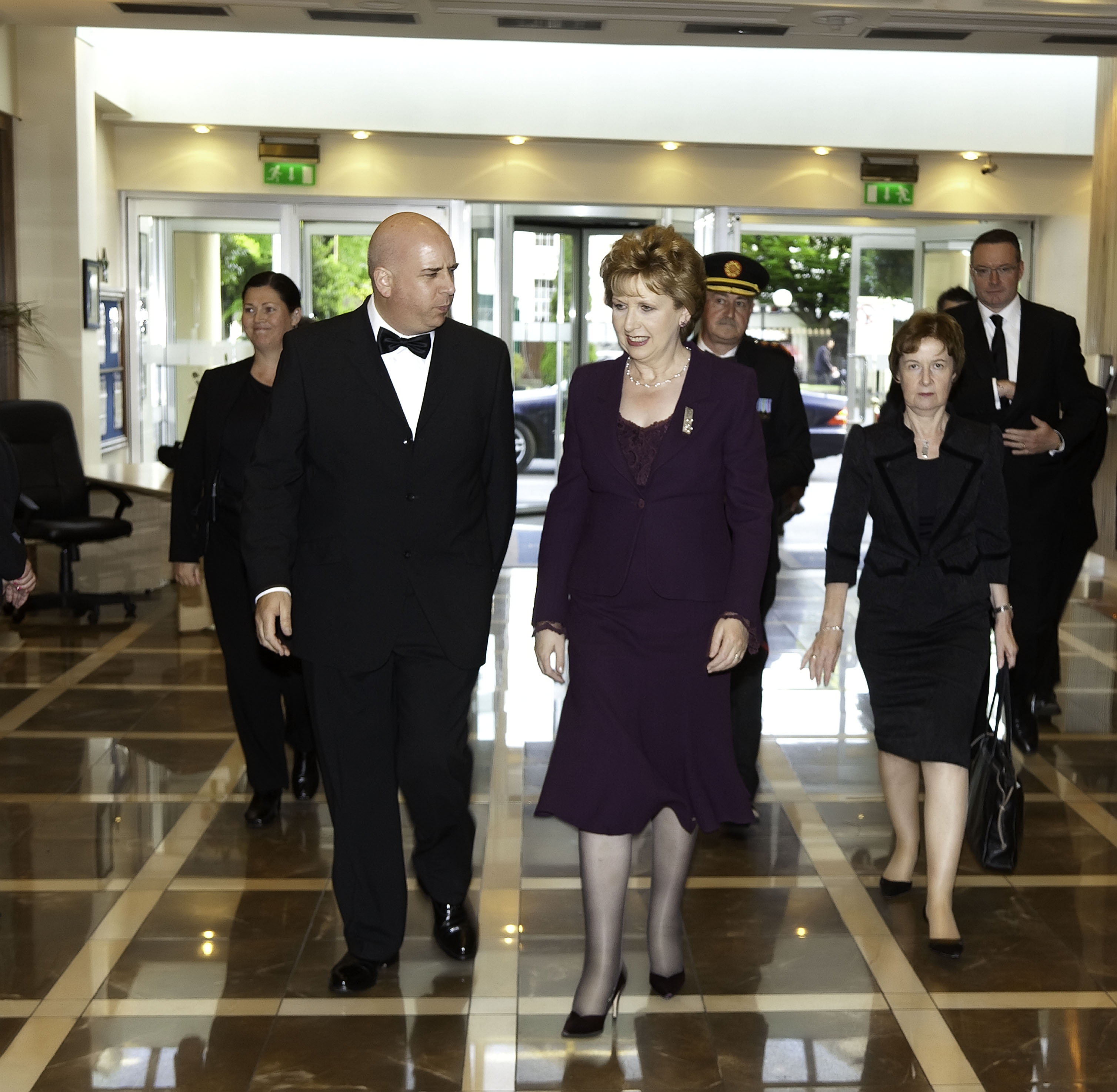 President Mary McAleese greeted by John Clifton, Burlington Hotel