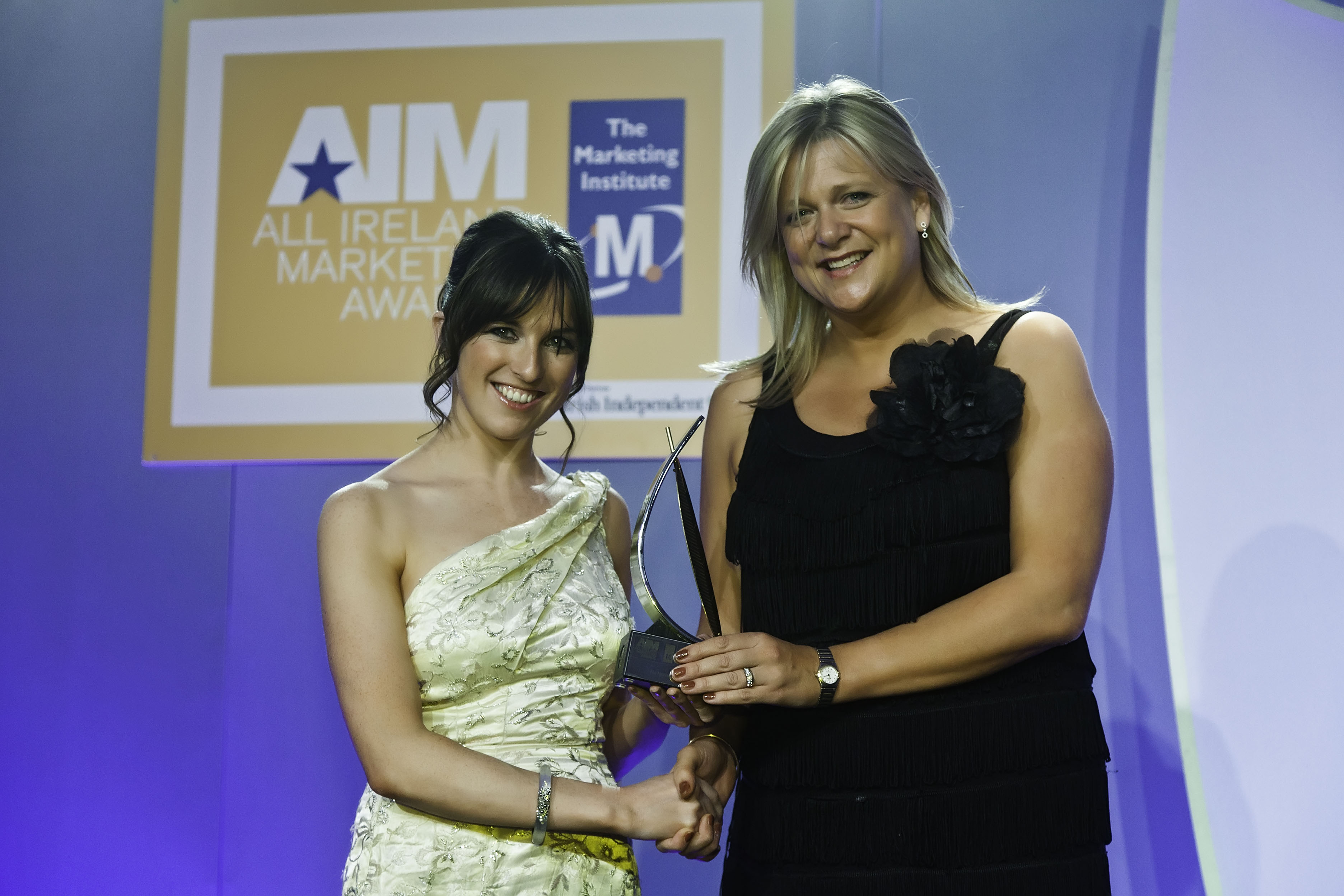 Paula Murphy, Vodafone (sponsor of the Marketing Innovation Award), with award winners Aine Phelan and June Dowling, Bord na Móna Fuels