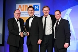 Peter Smyth, Newstalk (sponsor of the Advertising Campaign Award), with award winners, Liberty Insurance